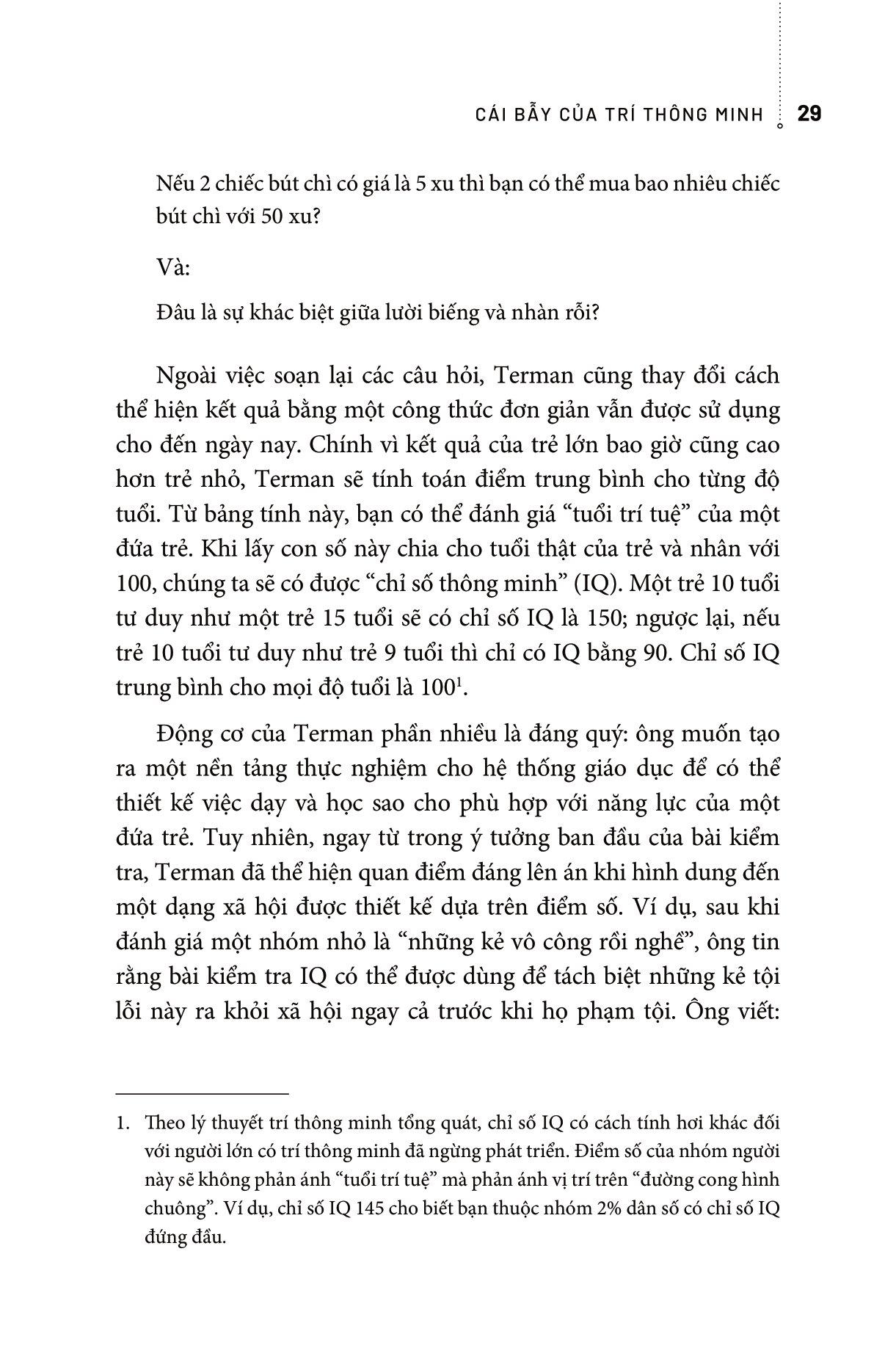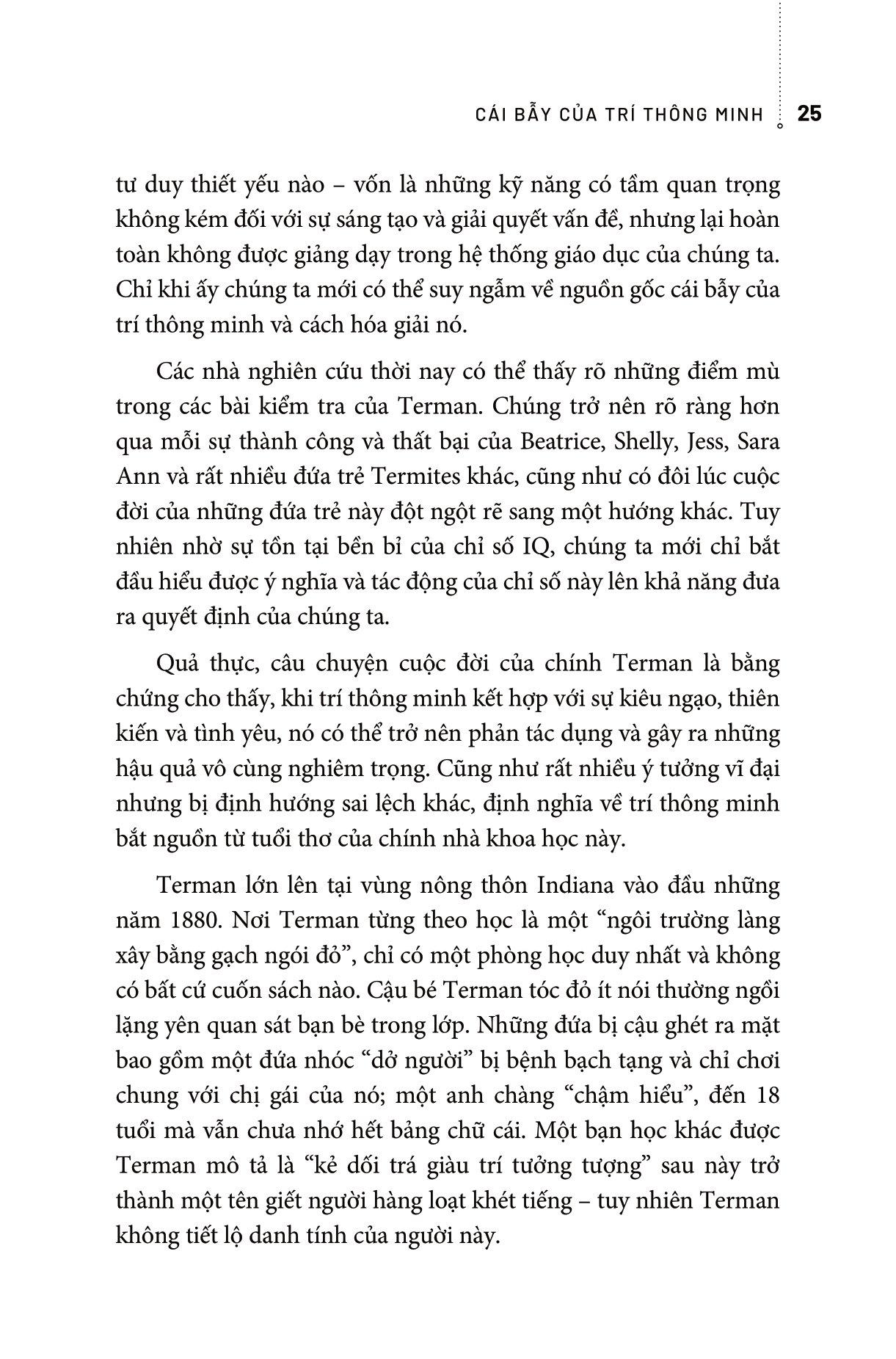 Nhà tâm lý học vĩ đại của thế kỷ 19 William James đã từng nói: “Nhiều người tưởng họ đang suy nghĩ, trong khi họ thực ra chỉ đang sắp xếp lại thiên kiến của m.ình”. Cái Bẫy Của Trí Thông Minh là cuốn sách viết cho những người muốn tránh khỏi việc mắc phải sai lầm này – đây là cuốn cẩm nang dành cho cả bộ môn khoa học và nghệ thuật về trí tuệ.