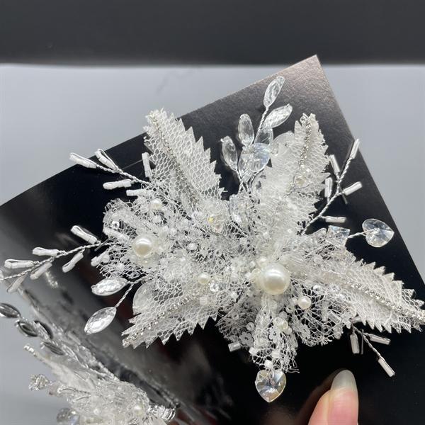 ✨Cài tóc cô dâu hoa lưới kết hạt cườm mẫu mới t7/2024