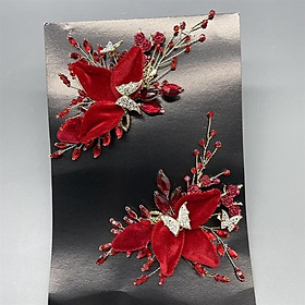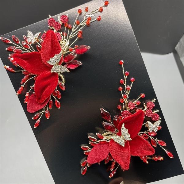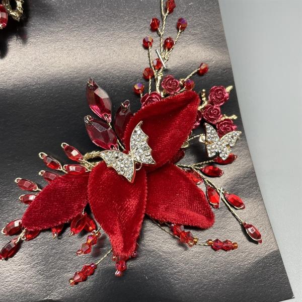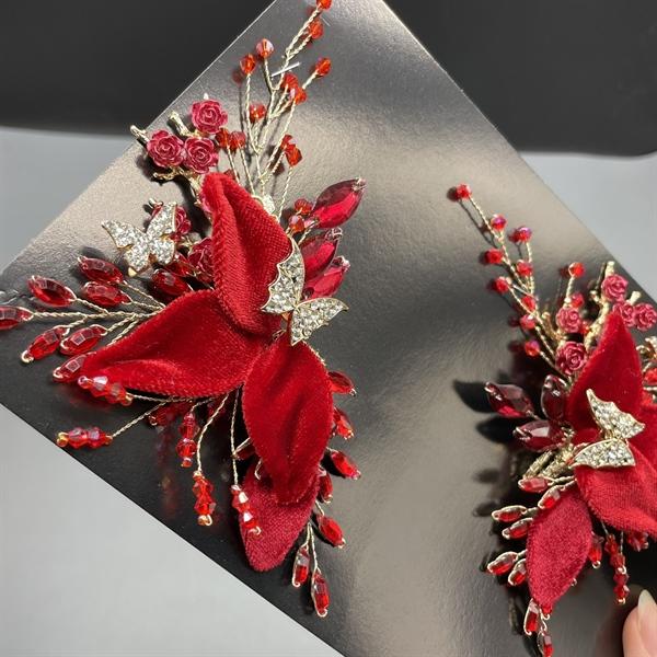 ✨Cài tóc cô dâu hoa nhung đỏ đính bướm vàng