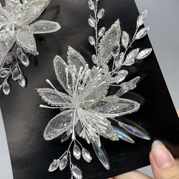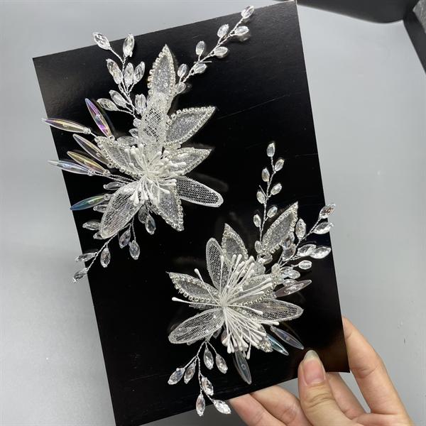 ✨Cài tóc cô dâu hoa trắng đính đá ngũ sắc mẫu mới t8/2024