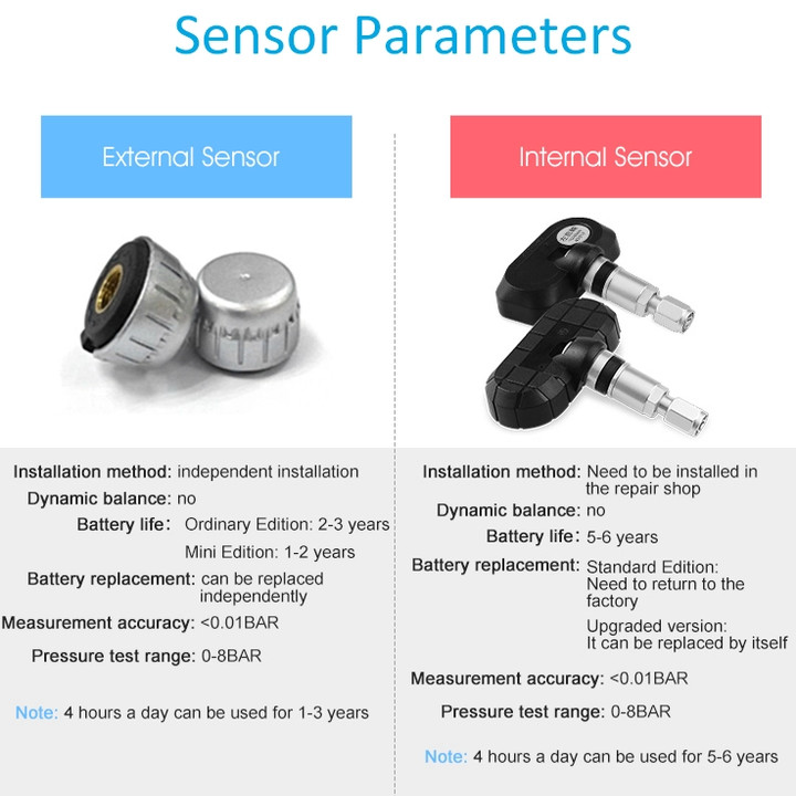 - Với hai đơn vị áp suất "PSI, BAR" và hai đơn vị nhiệt độ "℃, ℉" tùy chọn. Đặc điểm nổi bật của Cảm biến áp suất lốp