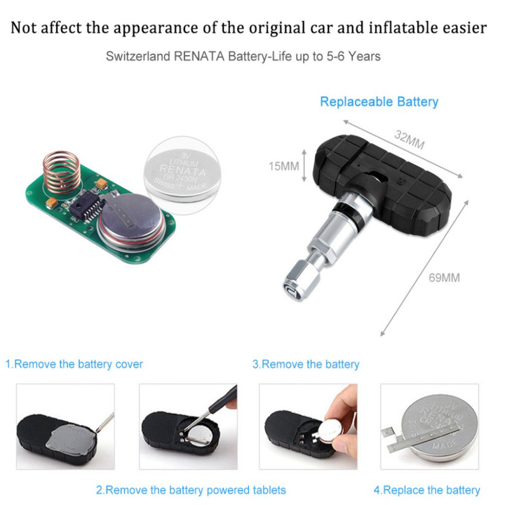 Cảm biến áp suất lốp trong cao cấp thương hiệu Careud dành cho các hãng xe - Cảnh báo áp suất, chính xác: ±1.5PSI (±0.1bar) - Điện áp: 8-16V - Hàng Nhập Khẩu Cảm