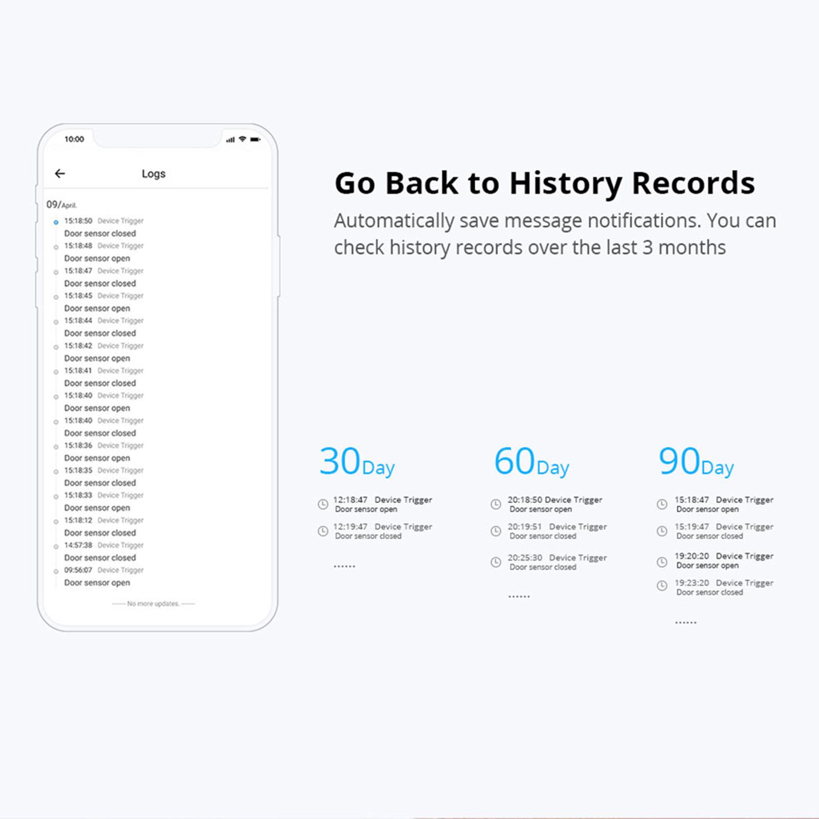 • Status Sync History Records: Worry about leaving your door or window open/closed? You can view instantly the status of home on APP. You can check history records over the last 3 months.