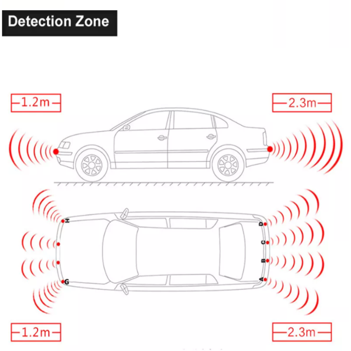 - Cảm biến tiến, lùi được tích hợp 8 cảm biến sóng siêu âm, 4 cảm biến phía trước và 4 cảm biến phía sau. Cảm biến khả năng phát hiện và đo khoảng cách một cách chính xác các chướng ngại vật phía trước và phía sau và cảnh báo người lái bằng công nghệ sóng siêu âm cực chuẩn.