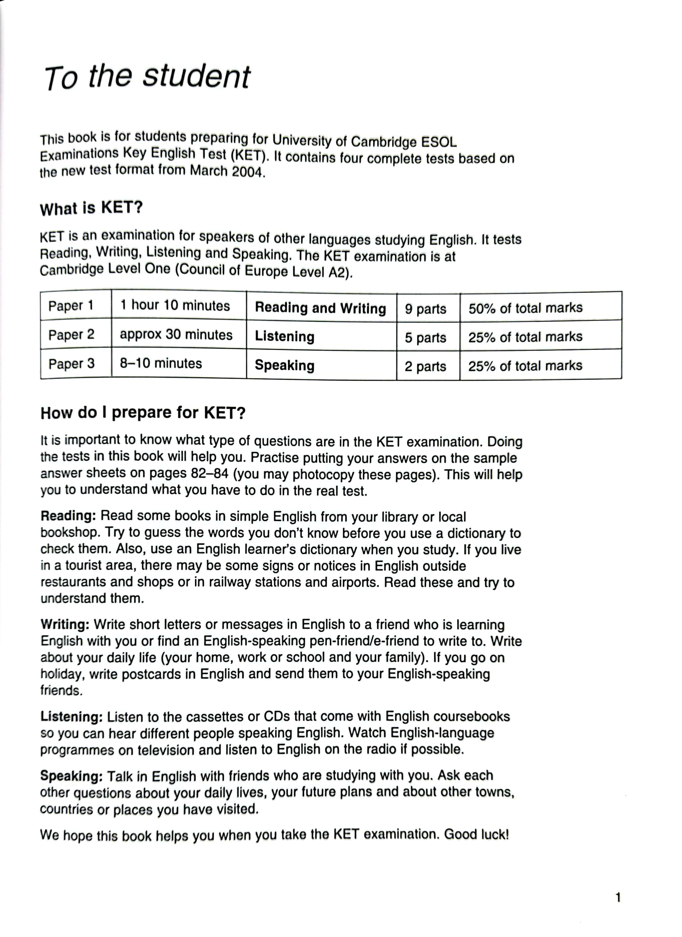 KET 1 TEST 2 * Có đáp án dịch nghĩa chi tiết * A2 ENGLISH * Key English Test 1