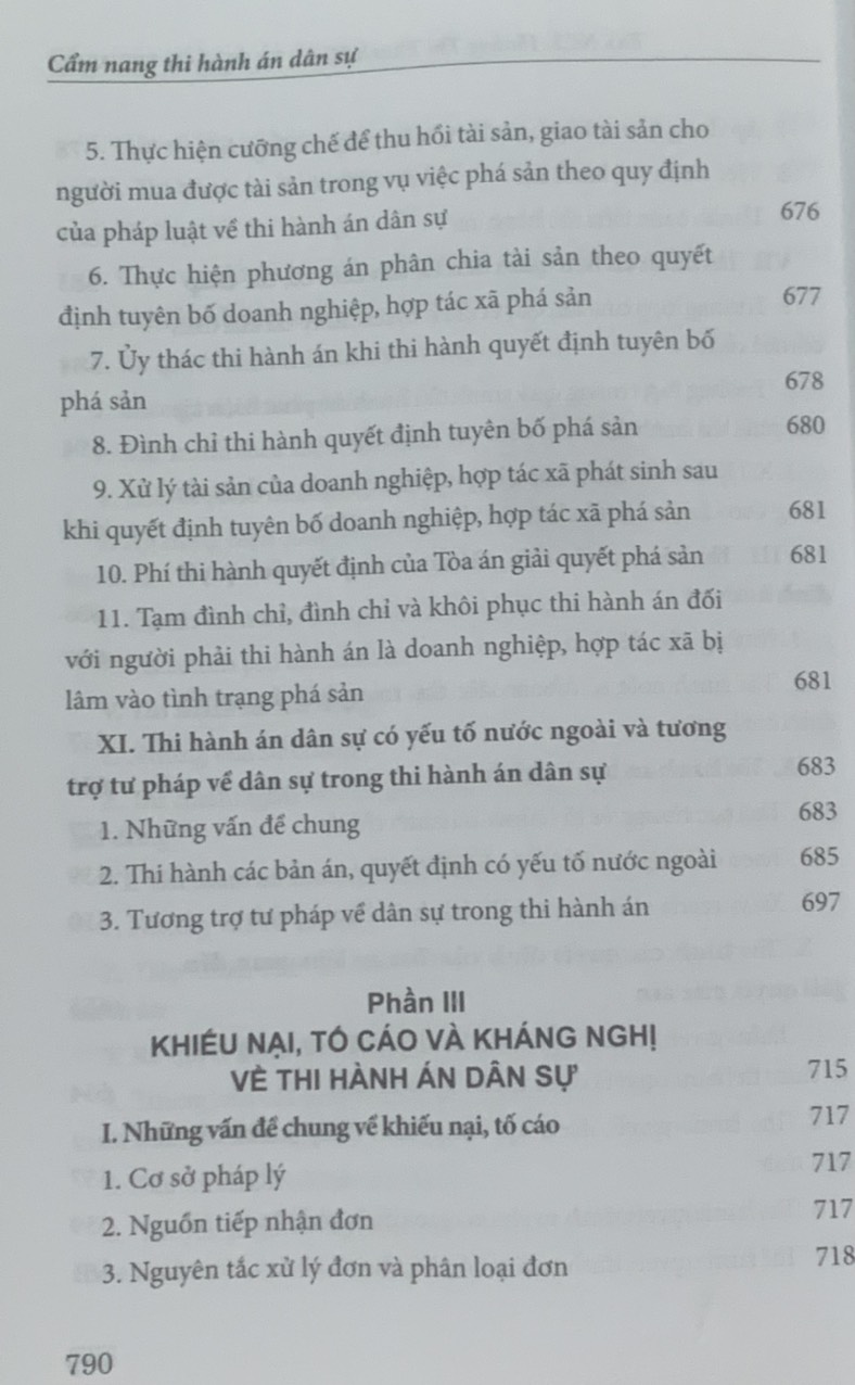 Để đáp ứng nhu cầu tra cứu nhanh, chính xác các quy định của pháp luật thi hành án dân sự và các quy định của pháp luật khác có liên quan trong quá trình tổ chức thi hành bản án, quyết định của Tòa án, đồng thời chỉ ra một số vướng mắc trong các quy định của pháp luật khi áp dụng vào các tình huống thi hành án cụ thể giúp Chấp hành viên áp dụng chính xác pháp luật, hạn chế thấp nhất sai sót có thể xảy ra, tránh thiệt hại thuộc phạm vi trách nhiệm bồi thường của Nhà nước và tránh gây thiệt hại cho các bên đương sự, Nhà xuất bản Tư pháp giới thiệu cuốn: “Cẩm nang thi hành án dân sự” (Tái bản lần thứ hai, có sửa đổi, bổ sung) của ThS.NCS. Hoàng Thị Thanh Hoa và TS. Nguyễn Văn Nghĩa.