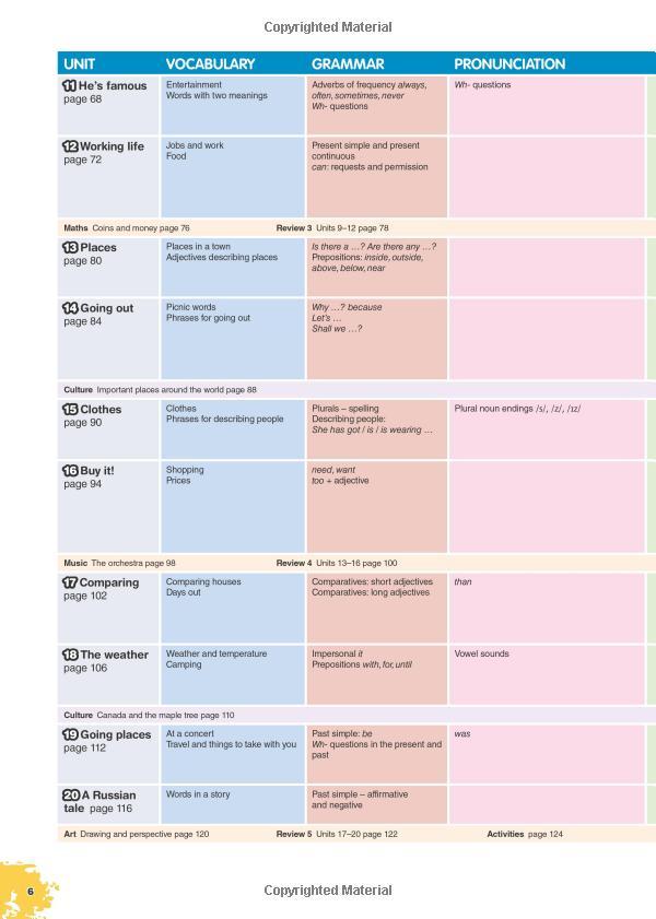 Provides more practice to consolidate the Student Book Picture Dictionary (Levels 1-4) helps with vocabulary practice Grammar Reference Guide (Levels 5-6) offers more practice, and allows students and teachers to check grammar rules