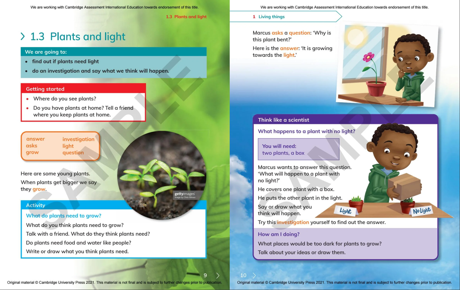 Cambridge Primary Science Learner's Book 1 With Digital Access (1 Year) 2nd Edition Discover our new resources for the Cambridge International Primary and Lower Secondary Curriculum Frameworks From experiments to discover what makes plants grow, to making musical instruments to investigate sound waves, Cambridge Primary Science gets your learners thinking like scientists! Packed with opportunities to plan experiments, make predictions and gather results, the series helps your learners think and work scientifically. Each unit ends with a project, like making a model garden, that helps students bring together what they have learnt, and understand how the topics relate to the real world. With vocabulary boxes, clear diagrams and supporting illustrations, the course makes science accessible for learners with English as a second language.