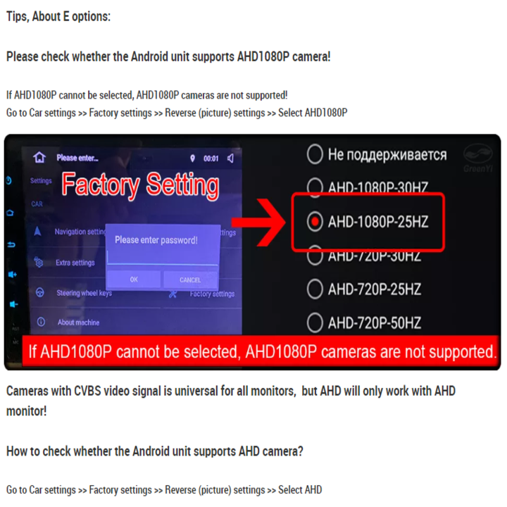Camera lùi GreenYi FA816 AHD 1080P độ nét cao dùng cho màn hình ô tô, Tiêu chuẩn chống nước IP68-Hàng chính hãng AHD là viết tắt của (Analog High Definition) công nghệ camera analog đạt đến chất lượng HD. - Do