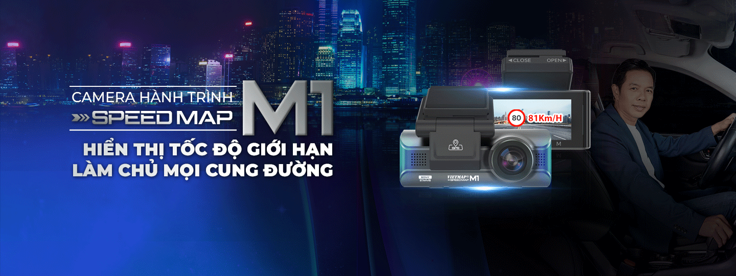 VIETMAP SpeedMap M1 dòng camera hành trình VIETMAP đầu tiên trên thị trường trang bị tính năng luôn hiển thị tốc độ giới hạn của tuyến đường di chuyển khi lái xe, đồng thời cảnh báo bằng hình ảnh & giọng nói khi tốc độ di chuyển cao hơn tốc độ cho phép.