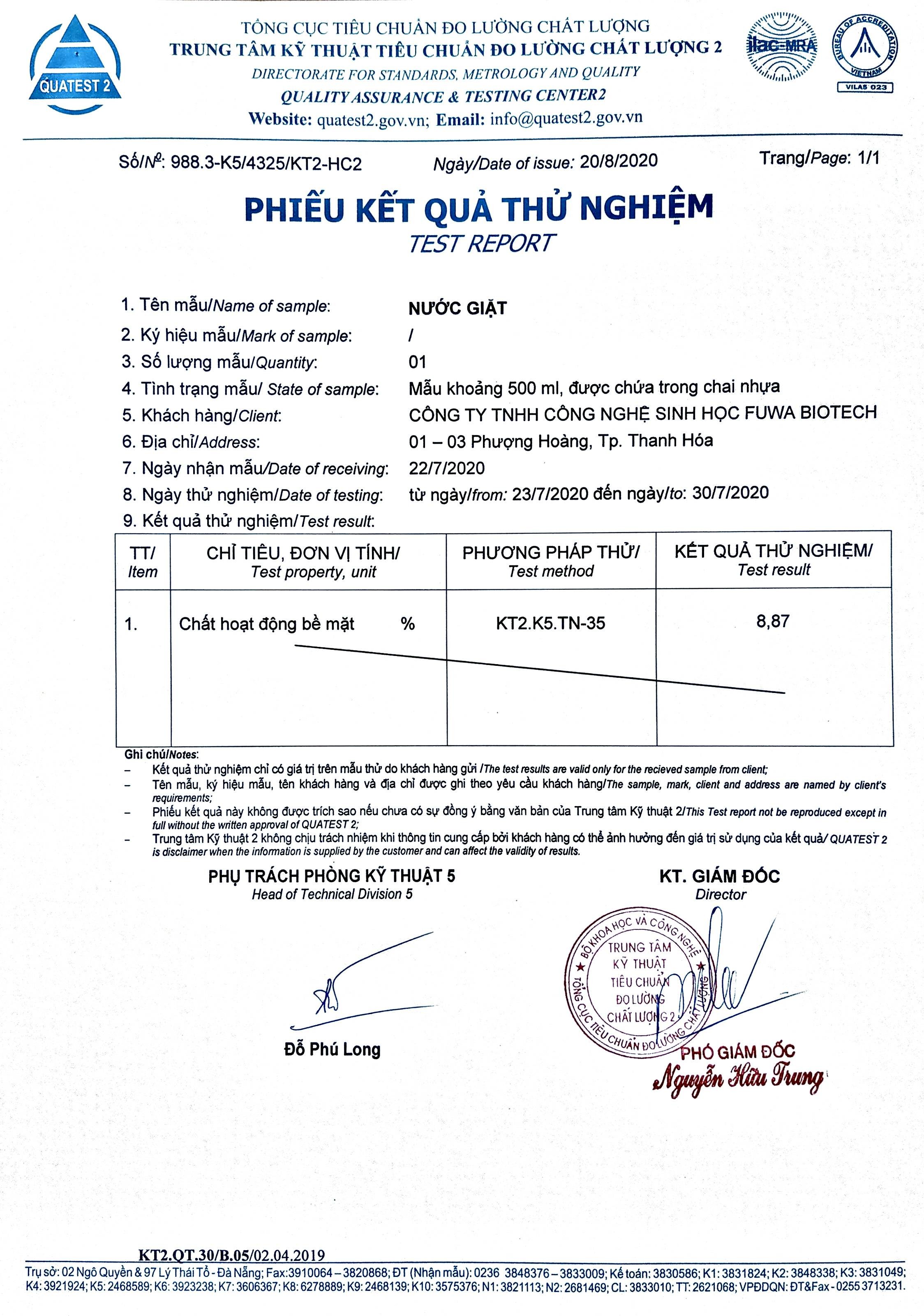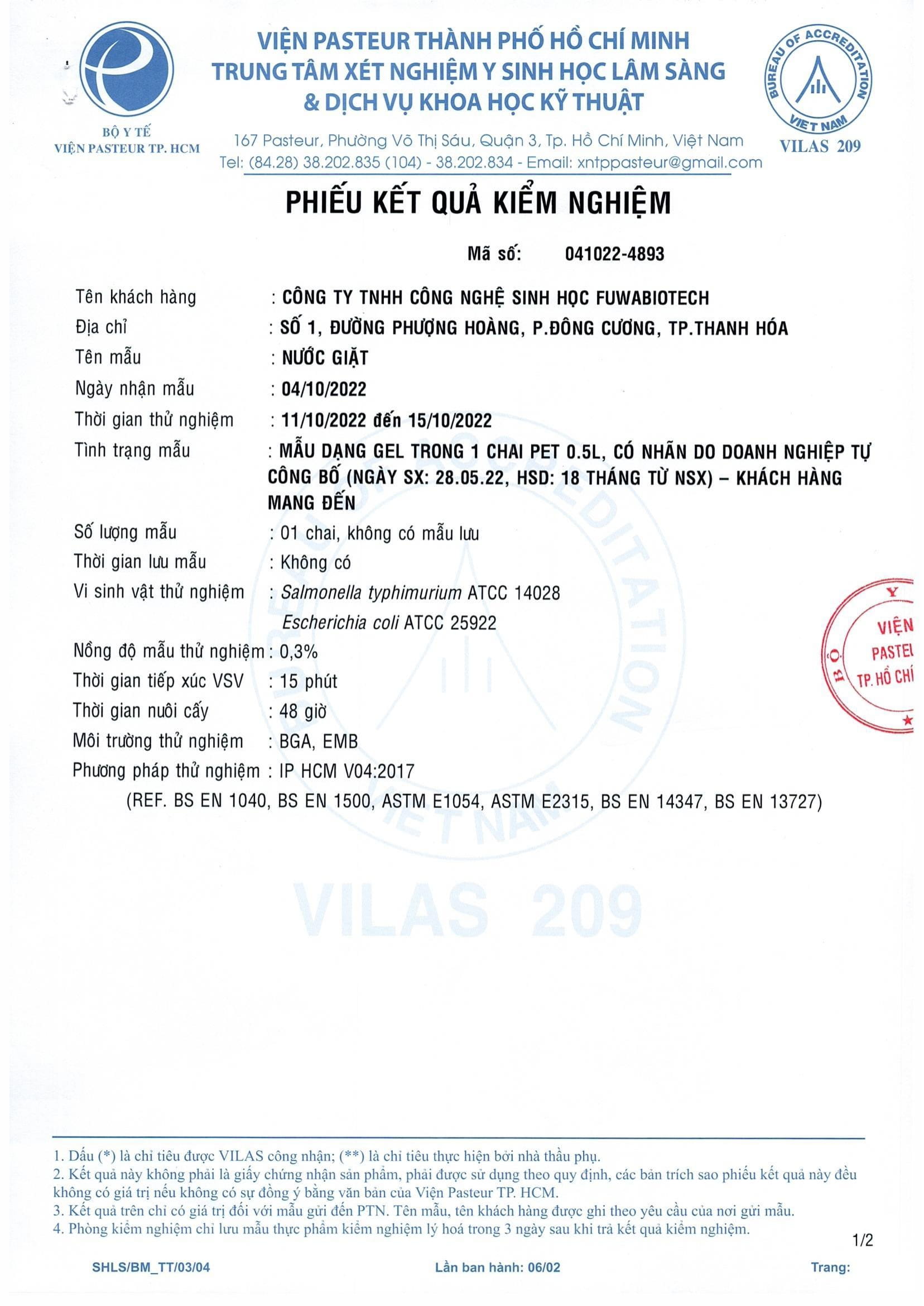 Nước giặt hữu cơ Fuwa3e ứng dụng công nghệ lên men vỏ dứa với Enzyme Bromelain trong dứa có hoạt tính làm tan và tẩy sạch các vết bẩn. Sản phẩm không chứa hoá chất độc hại, chất tẩy trắng và hương liệu nên phù hợp giặt đồ cho trẻ sơ sinh, đồ lót, khăn. Sản phẩn đạt chuẩn không kích ứng da được kiểm định bởi Quatest 2. Một đặc điểm nổi bật của sản phẩm là nước thải sau khi giặt có thể dùng trực tiếp để tưới cây, các enzyme trong nước thải sẽ làm sạch đất và cung cấp thêm lợi khuẩn cho cây trồng. Sản phẩm Refill 10L là một trong những nỗ lực của Fuwa3e trong việc giảm thiểu nhựa đựng và giúp tiết kiệm chi phí hơn so với mua từng chai nhỏ.