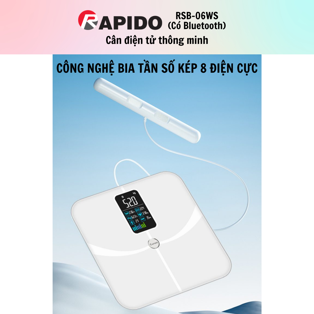 ✨Cân sức khỏe thông minh Rapido RSB-06WS - Hàng chính hãng - Bảo Hành 12 Tháng