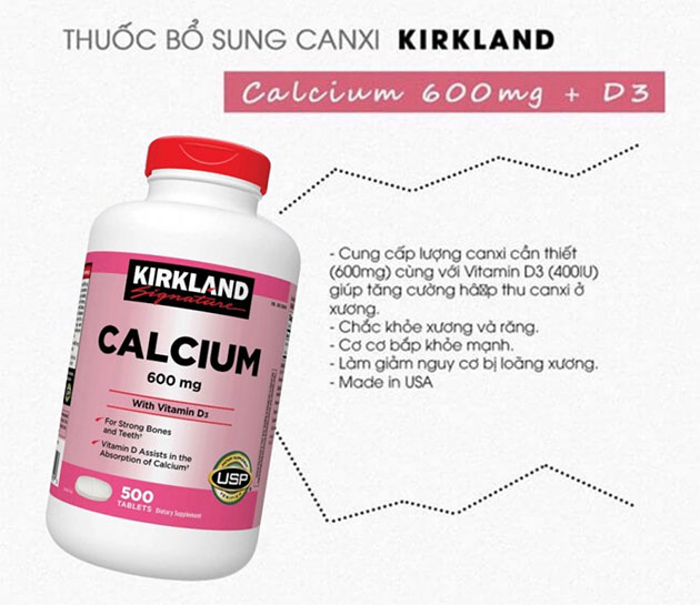 - Calci d3 Mỹ Kirkland Signature Calcium 600mg With Vitamin D3 500 Viên cung cấp canxi và bổ sung vitamin D3 hàm lượng 400IU để giúp hấp thu canxi tốt hơn, tránh bị đào thải canxi, hỗ trợ hấp thu kẽm, magie và rất quan trọng đến sự phát triển và tái tạo xương. Là sản phẩm vô cùng lý tưởng để chăm sóc xương khớp cho người lớn tuổi, phòng ngừa xốp xương, loãng xương.