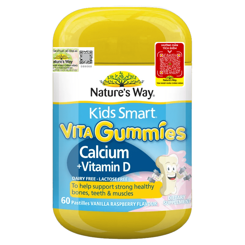 Canxi + Vitamin D cho trẻ 2-11 tuổi Kids Smart Vita Gummies Calcium + Vitamin D Nature's Way Úc giúp hỗ trợ xương, răng và cơ bắp khỏe mạnh, cao lớn 1.Giới thiệu canxi