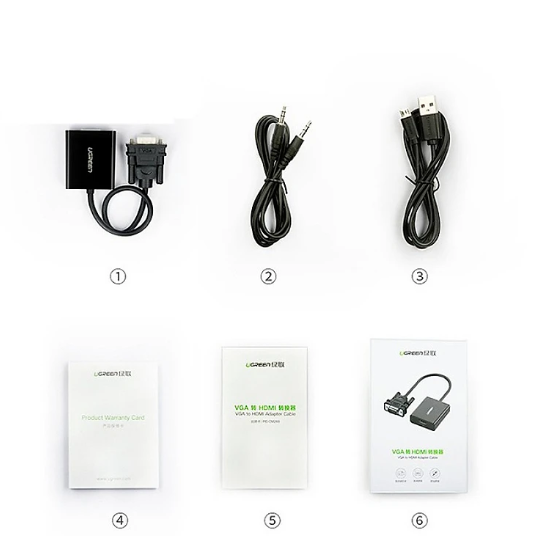 Ugreen 40224 Vga To Hdmi Converter TrắNg 40224 1. Features: Convert VGA signal to standard HDMI signal 2. Input: 1 3.5mm VGA + Audio port 3. Output: 1 standard HDMI 1.4 port. Support full HD