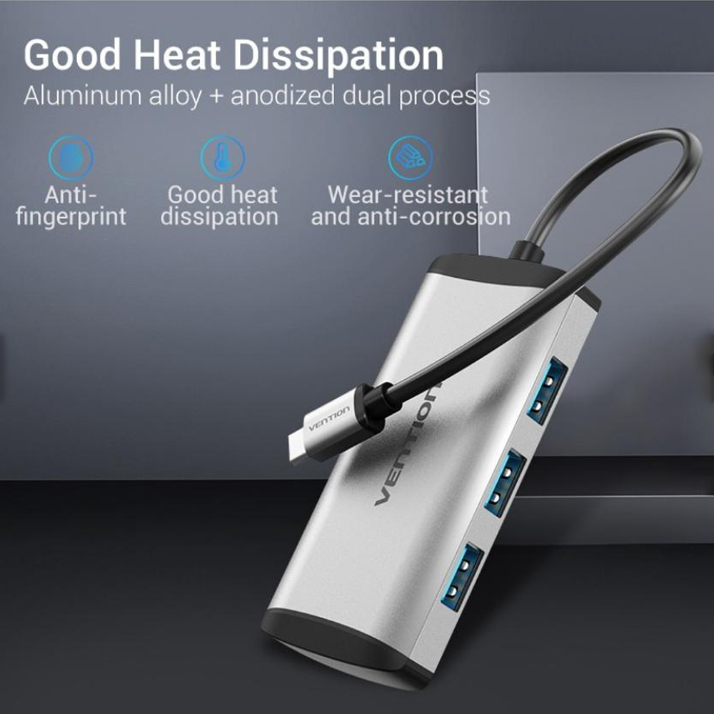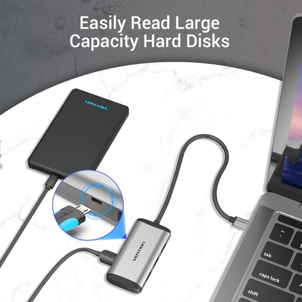[Mở rộng 4 cổng USB 3.0] Bộ chuyển đổi Type-C hỗ trợ kết nối đồng thời 4 thiết bị USB, chẳng hạn như ổ cứng ngoài, ổ flash USB, chuột, bàn phím, thẻ nhớ,