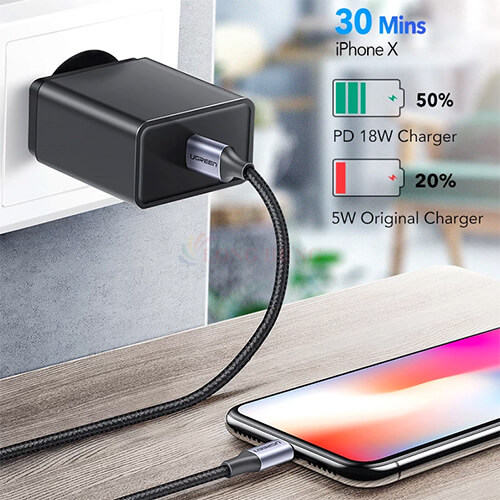 1. Cáp sạc UGREEN USB C (Tương thích với Thunderbolt 3) đảm bảo sạc an toàn ở tốc độ lên đến 3A cho điện thoại thông minh, máy tính bảng và máy tính xách tay