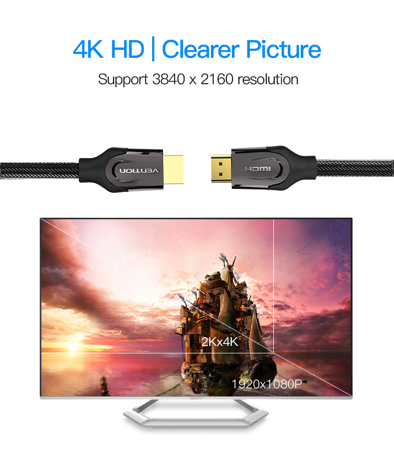 - Cáp HDMI chuẩn 2.0 của Vention hỗ trợ 4K60Hz với xu thế thời thượng mọi gia đình đều ưu chuộng những thiết bị công nghệ số bậc cao đồng nghĩa với việc phải sử