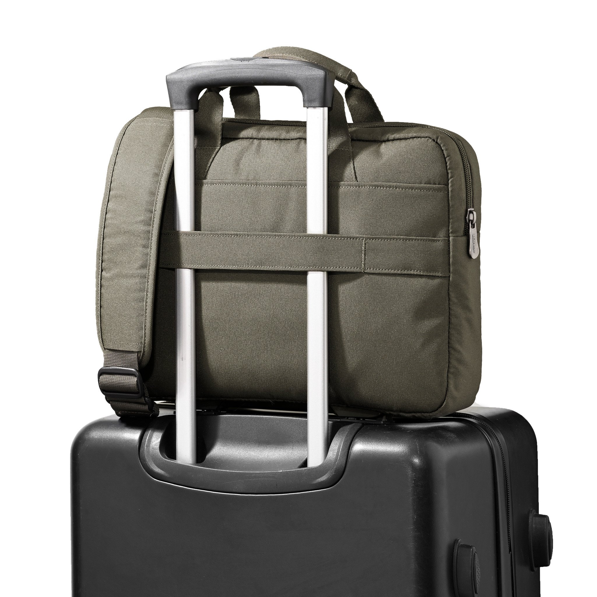 Phía sau được thiết kế thêm dây đai để gài vào tay kéo va li, giúp cho những chuyến công tác của bạn trở lên đơn giản và gọn nhẹ hơn.