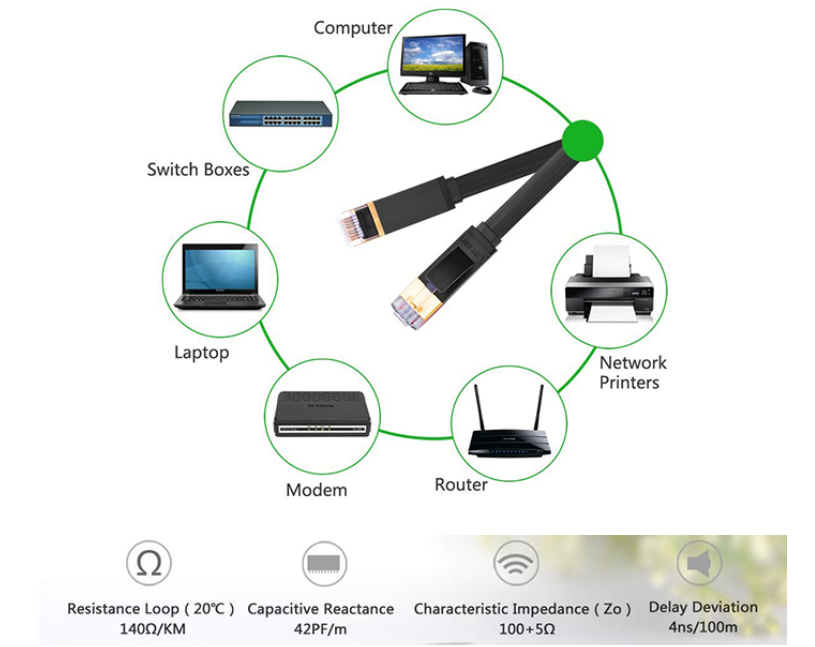 1. Data transfer rate: 10G 2. Frequency: 600MHz 3. 4 shielded twisted pair (U/FTP) of copper wires 4. Pure Copper Core