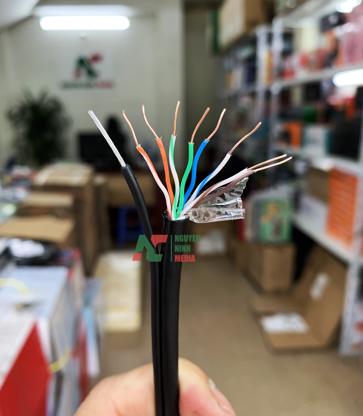 - Được dùng để truyền tín hiệu camera, truyền hình cáp, Internet. SHOP SẼ BẤM SẴN 2 ĐẦU CHO KHÁCH SAU KHI KHÁCH ĐẶT HÀNG Ạ Cáp mạng Cat5E ngoài trời có sợi thép cường lực chuyên dùng truyền tải tín hiệu mạng ngoài trời như camera ip,switch,router wifi.