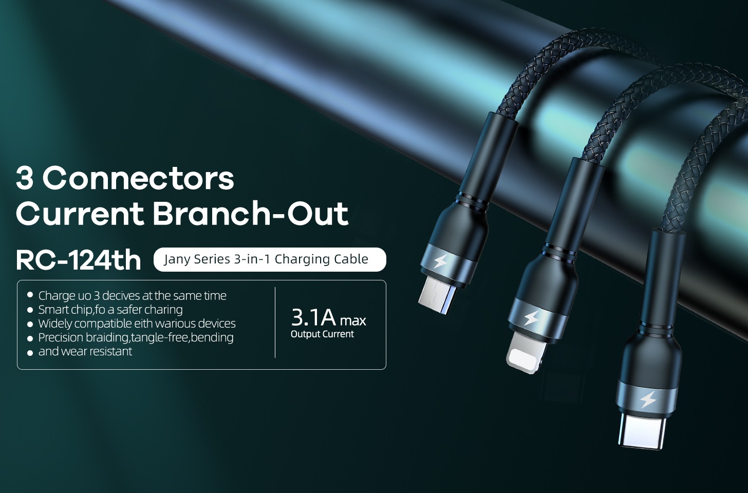 ✨Cáp sạc 3 đầu đa năng 3.1A Remax RC124th (1.2m) - Hàng chính hãng