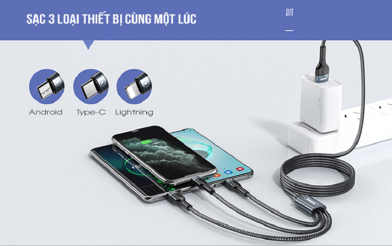 Giới thiệu Cáp sạc 3 đầu và truyền dữ liệu tốc độ cao Baseus Three Primary Colors 3 in 1 cable CAMLT-BSY (USB to Type C/ Micro/ Light-ning Fast Charging Cable, 3.5A) And-roid và Ap-ple iOS là hai hệ sinh thái phổ biến