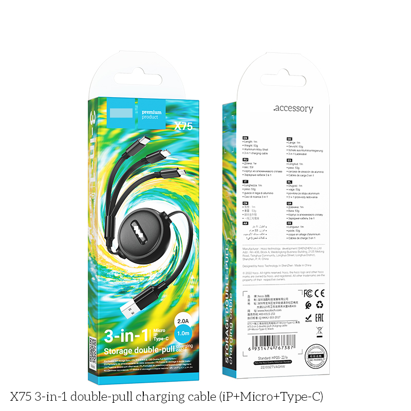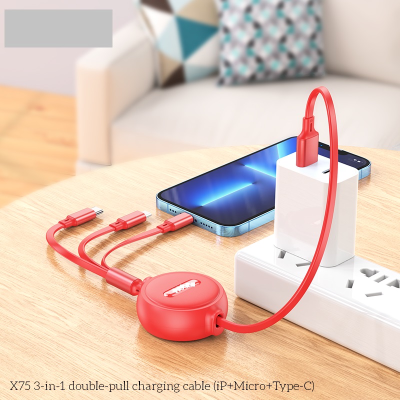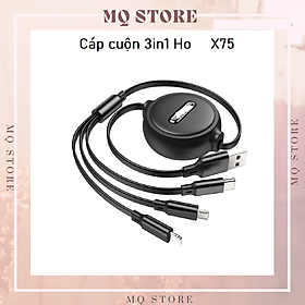 Cáp Sạc Đa Năng Dây Rút Ho... X75 3 in 1 dây dẹp chống đứt, độ dài 1 mét