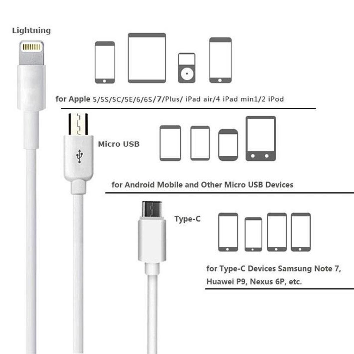 - Dùng được cùng lúc cho các máy dùng chuẩn: L, Type-C & Micro. Tương thích và Sạc được cho mọi thiết bị di dộng có mặt trên thị trường hiện tại. Có thể sạc cùng lúc nhiều thiết bị.