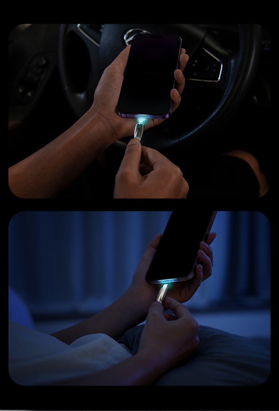 Cáp sạc Baseus Baseus X- shaped Light chân Lighting và Type C (Sạc nhanh, Sợi Carbon Siêu Bền, Led đổi màu khi sạc đầy) Tính năng cơ bản Cáp Baseus X- shaped Light chân Lighting