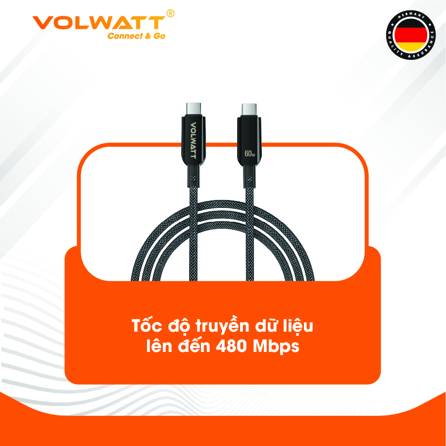 Cáp sạc siêu nhanh & truyền dữ liệu tốc độ cao Volwatt GE-038-CC – Giải pháp tối ưu cho nhu cầu sạc nhanh 60W và truyền dữ liệu ổn định cho nhiều thiết bị. 1.