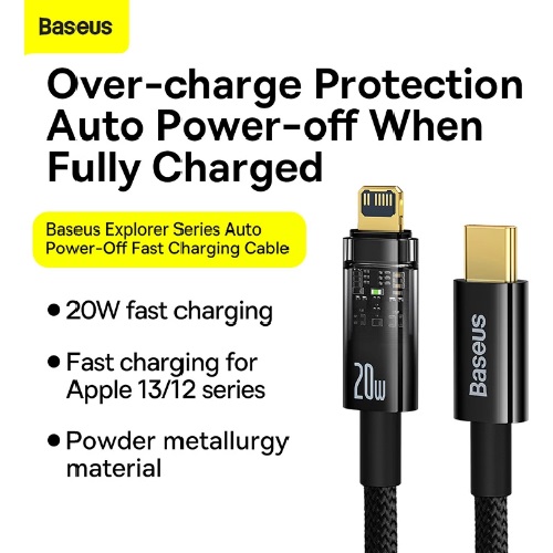 • Tên sản phẩm: Baseus Explorer Series Fast Charging Data Cable with Auto Power-Off  Type C to IP 20W