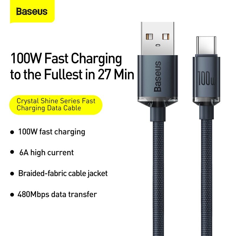 ✨Cáp Sạc Siêu Nhanh USB to Type-C 100W Baseus Crystal Shine Series Fast Charging - Hàng Chính Hãng