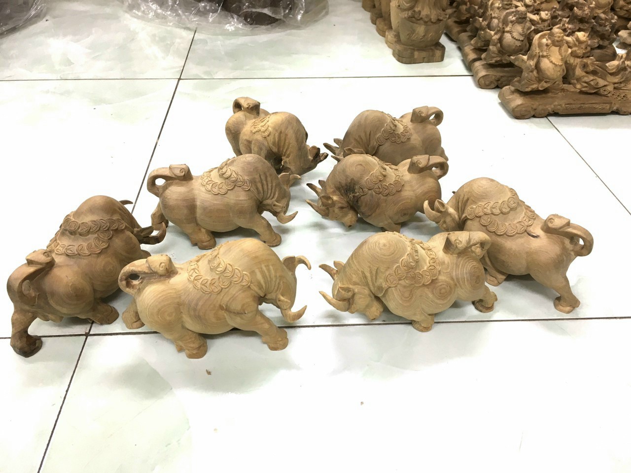 ✨Cặp tượng bò tót bằng gỗ bách xanh thơm nức kt 15×8×8cm
