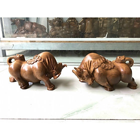 Cặp bò tót  được làm bằng chất liệu gỗ bách xanh thơm nứt liền khối tự nhiên 100%  Kích thước ngang 15 cao 8 sâu 8cm _ Cặp bò tót được trạm khắc vô cùng tỉ mỉ tinh sảo kỳ công .Đi hầu hết tất cả mọi chi tiết góc ngách nội dung hoa văn của tượng .Đều được ngọt tỉa chỉnh sửa hoàn toàn bằng tay thủ công .Đồng thời tượng được kiểm định vô cùng lưỡng như thẩm sấy cho gỗ khô kiệt .Mục đích trống dập nứt vênh mo mối mọt cho vào trà nhám đánh giấy giáp sạch sẽ ,sờ mát lạnh .Song cho phun lót làm bóng mờ để giữ lại mầu sắc vân gỗ tự nhiên .Tượng được làm và hoàn thiện do bàn tay khối óc tài hoa .Từ những người thợ giàu kinh  kinh nghiệm ,cũng như tay nghề cao trong làng nghề truyền thống .Chính vì thế cặp bò tót đã đáp ứng đầy đủ những tiêu trí ( Đẹp bền rẻ ) Thẩm mỹ nghệ thuật với chất lượng tuyệt vời