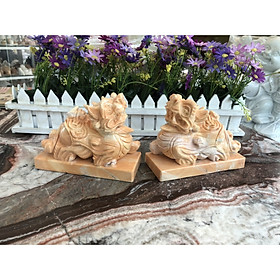Hợp mệnh Thổ - Kim Chất liệu: Đá cẩm thạch vàng cà rốt Kích thước: Dài 15 cm X Rộng 6 cm x Cao 12,5 cm Khối lượng: 3,2 kg / cặp Ý nghĩa Tỳ