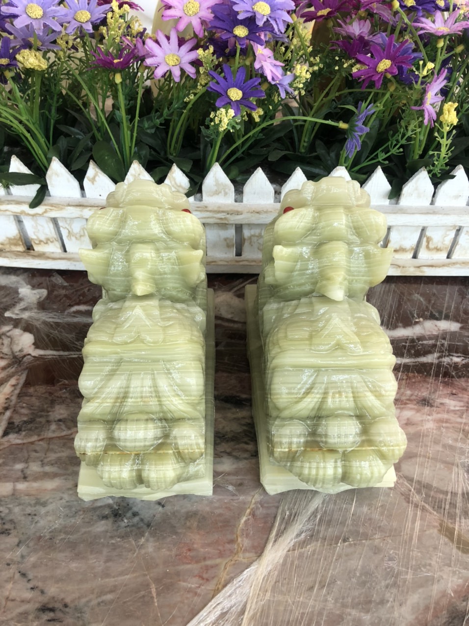 Hợp mệnh Hỏa, Mộc và Kim Chất liệu: Đá ngọc Onyx Kích thước: Dài 25 cm x Rộng 8 cm x Cao 16 cm Khối lượng: 7,6 kg/ cặp Ý nghĩa Tỳ Hưu: là linh