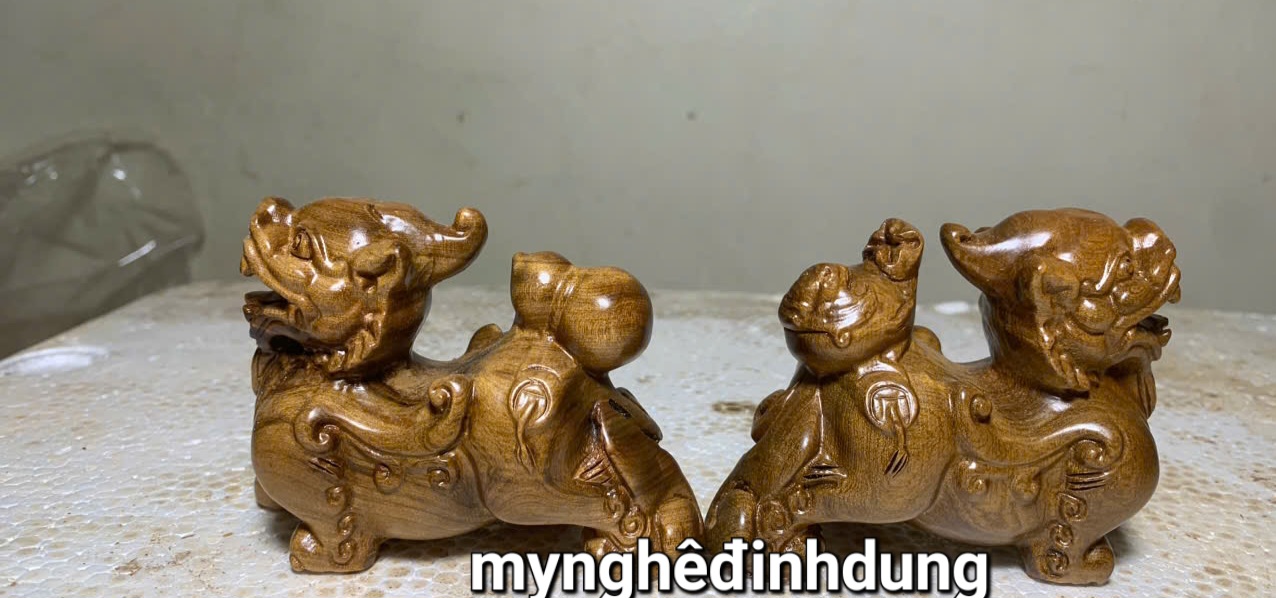 ✨Cặp tỳ hưu phong thủy hút tài lộc bằng gỗ bách xanh thơm nức kt 10x7x5cm