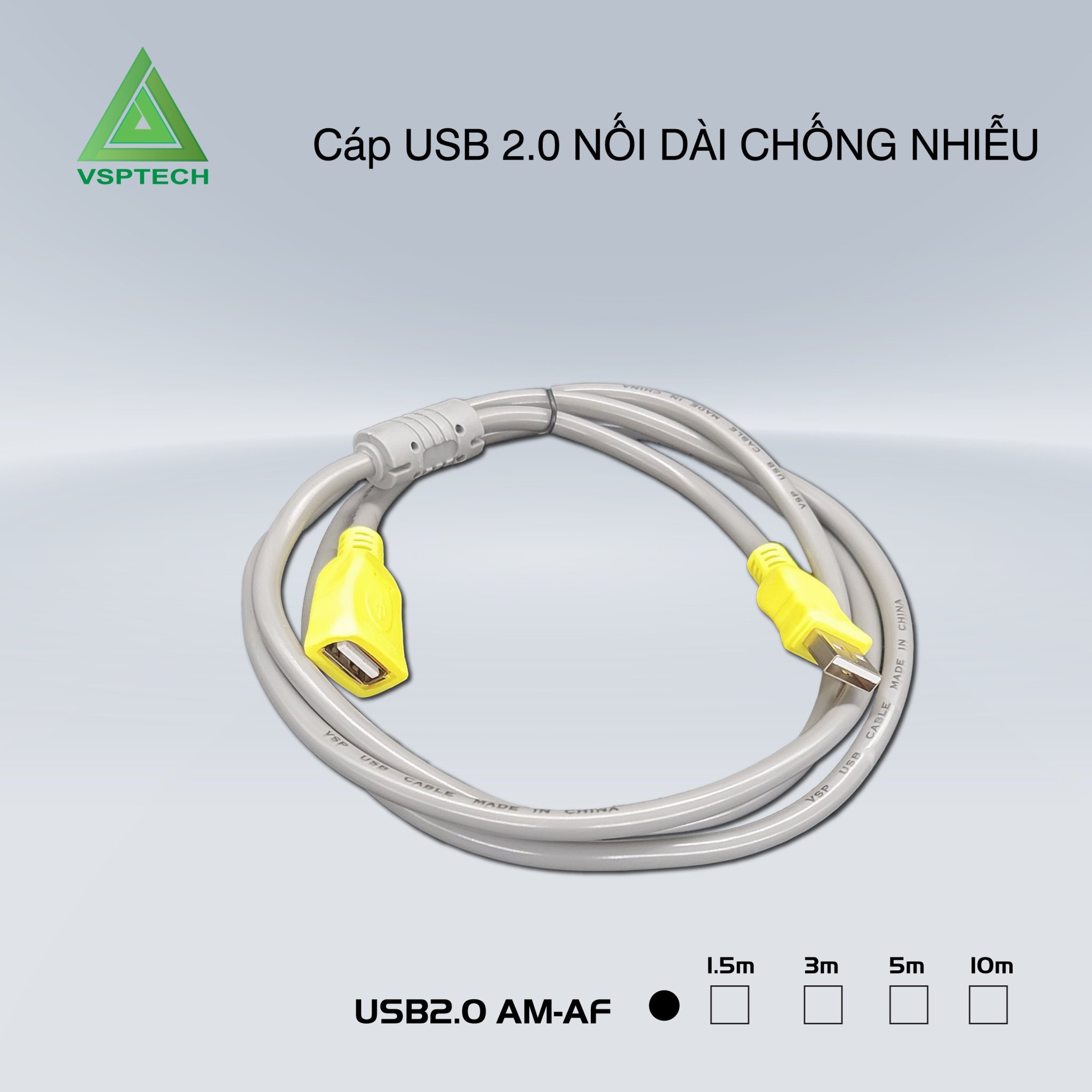★ Thông Số Kỹ Thuật: • Sản phẩm: USB nối dài • Chiều dài cáp: 3m • Tên hãng : VSPTECH • Chuẩn cáp USB 2.0 • Tương thích cả với USB 2.0 và 1.1