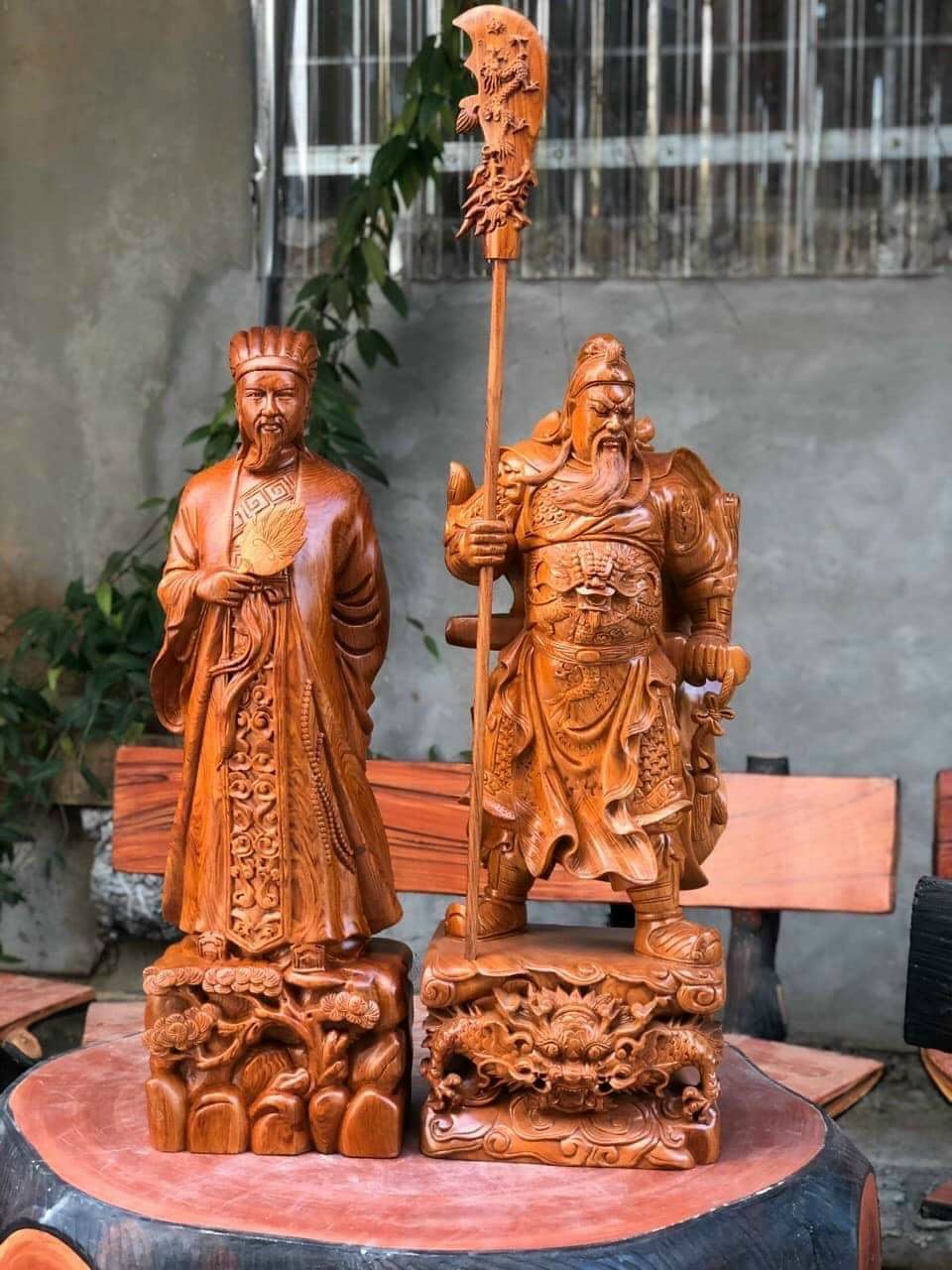 Tượng văn võ song toàn | Tượng gỗ Khổng Minh, Quan Công 80cm siêu đẹp