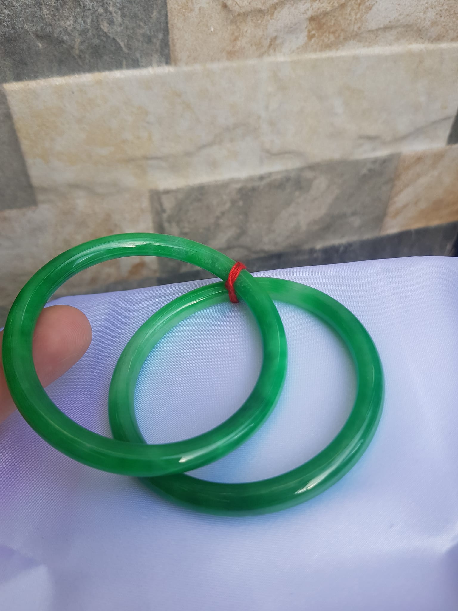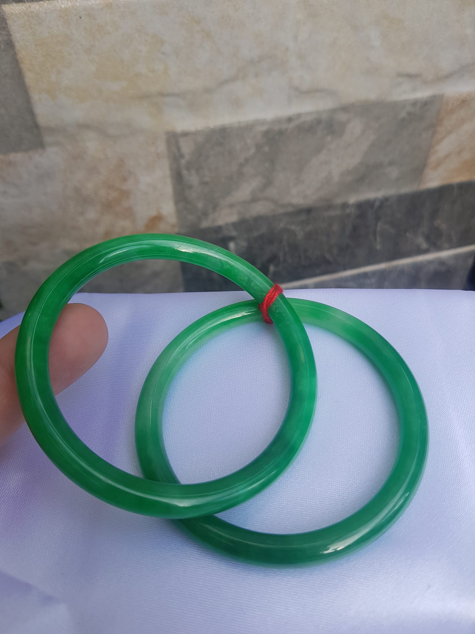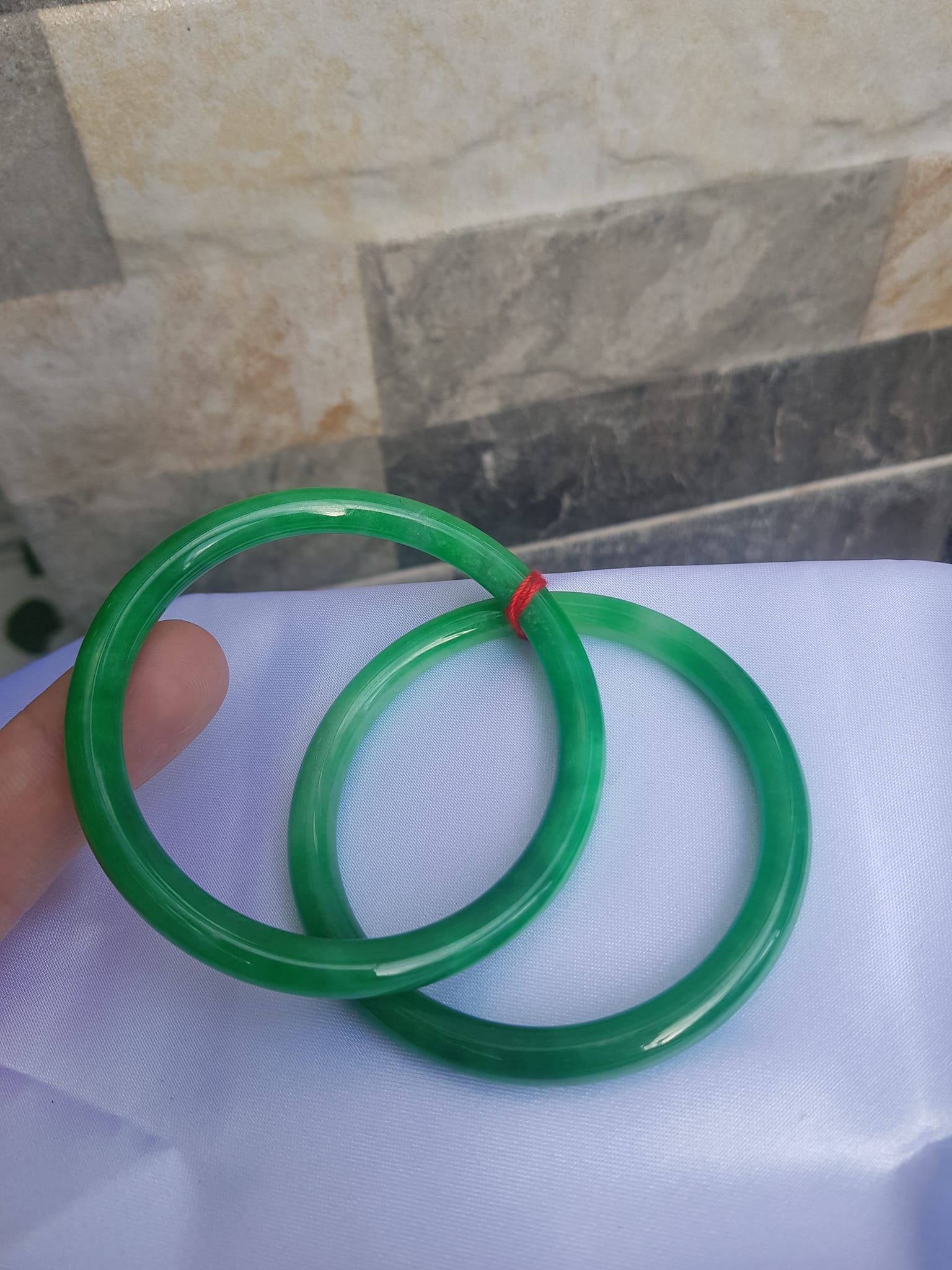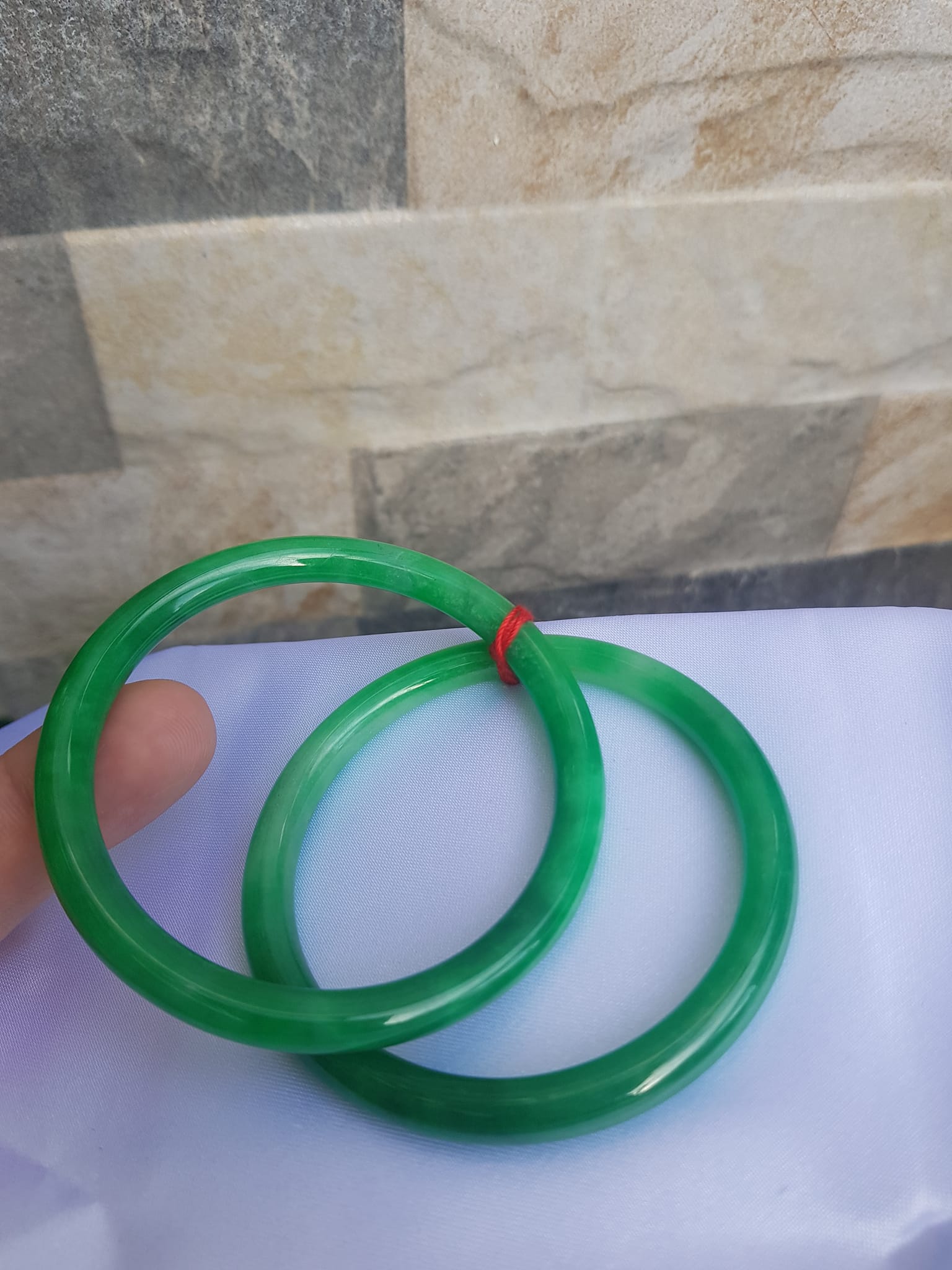 Cặp Vòng Cẩm Thạch tròn 51mm x 6mm Màu xanh ngọc đậm bóng đẹp ạ Nữ mệnh Mộc Hỏa Thủy 50kg - 56kg ạ
