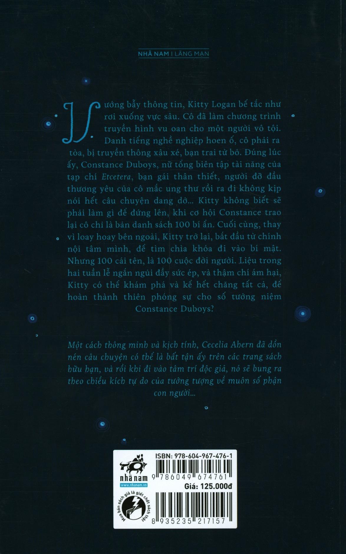 Một cách thông minh và kịch tính, Cecelia Ahern đã dồn nén câu chuyện có thể là bất tận ấy trên các trang sách hữu hạn, và rồi khi đi vào tâm trí độc giả, nó sẽ bung ra theo chiều kích tự do của tưởng tượng về muôn số phận con người…