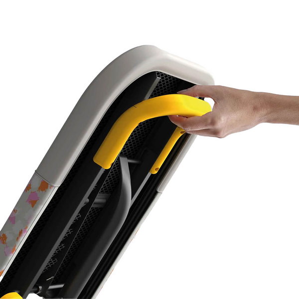 Lớp trên cùng bằng vải cotton 100% với phần còn lại của bàn ủi bằng silicon chịu nhiệt và được tích hợp sẵn. Một tay cầm lớn ở mặt sau giúp mang theo dễ dàng