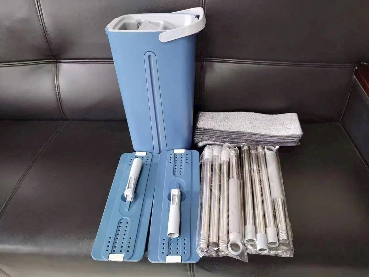 MÔ TẢ SẢN PHẨM: Cây lau nhà tự vắt thông minh (1 thùng + 2 cây lau + 8 bông lau) đầu xoay 360 độ tiện lợi Thông tin sản phẩm Cán bằng inox không