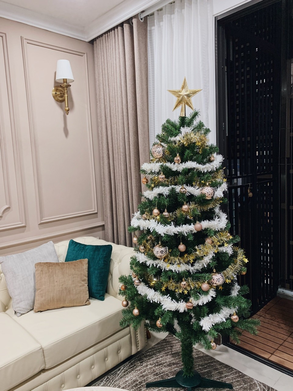 Với cây thông đẹp như vậy quý khách Chỉ cần thêm 1 hộp châu (quả cầu) khoảng 30 chi tiết, thêm ít bộ đèn nháy là có một cây thông lung linh, cho không khí Giáng Sinh tràn ngập ngôi nhà