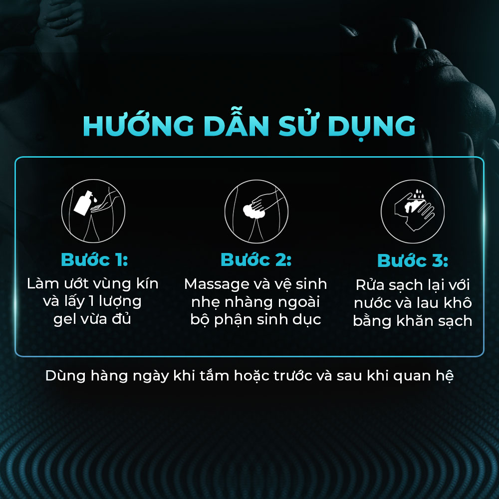✪ Cách dùng: Lấy một lượng gel vừa đủ ra lòng bàn tay, làm ướt và vệ sinh nhẹ nhàng "cậu bé". Sau đó, hãy rửa sạch lại với nước và thấm khô bằng khăn sạch. Lưu ý: Sản phẩm chỉ được khuyến nghị sử dụng để vệ sinh ngoài.