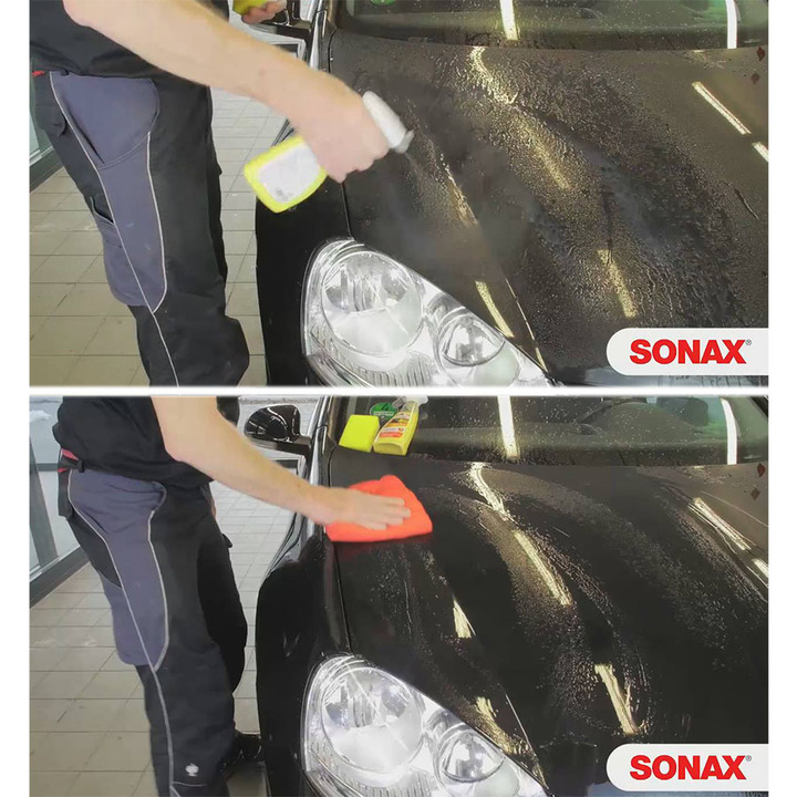 - Sản phẩm được nhập khẩu chính hãng từ thương hiệu Sonax, sản xuất tại Đức, sản phẩm chăm sóc xe đạt tiêu chuẩn châu Âu. Thành phần: Của ( Sonax HighSpeedWax )