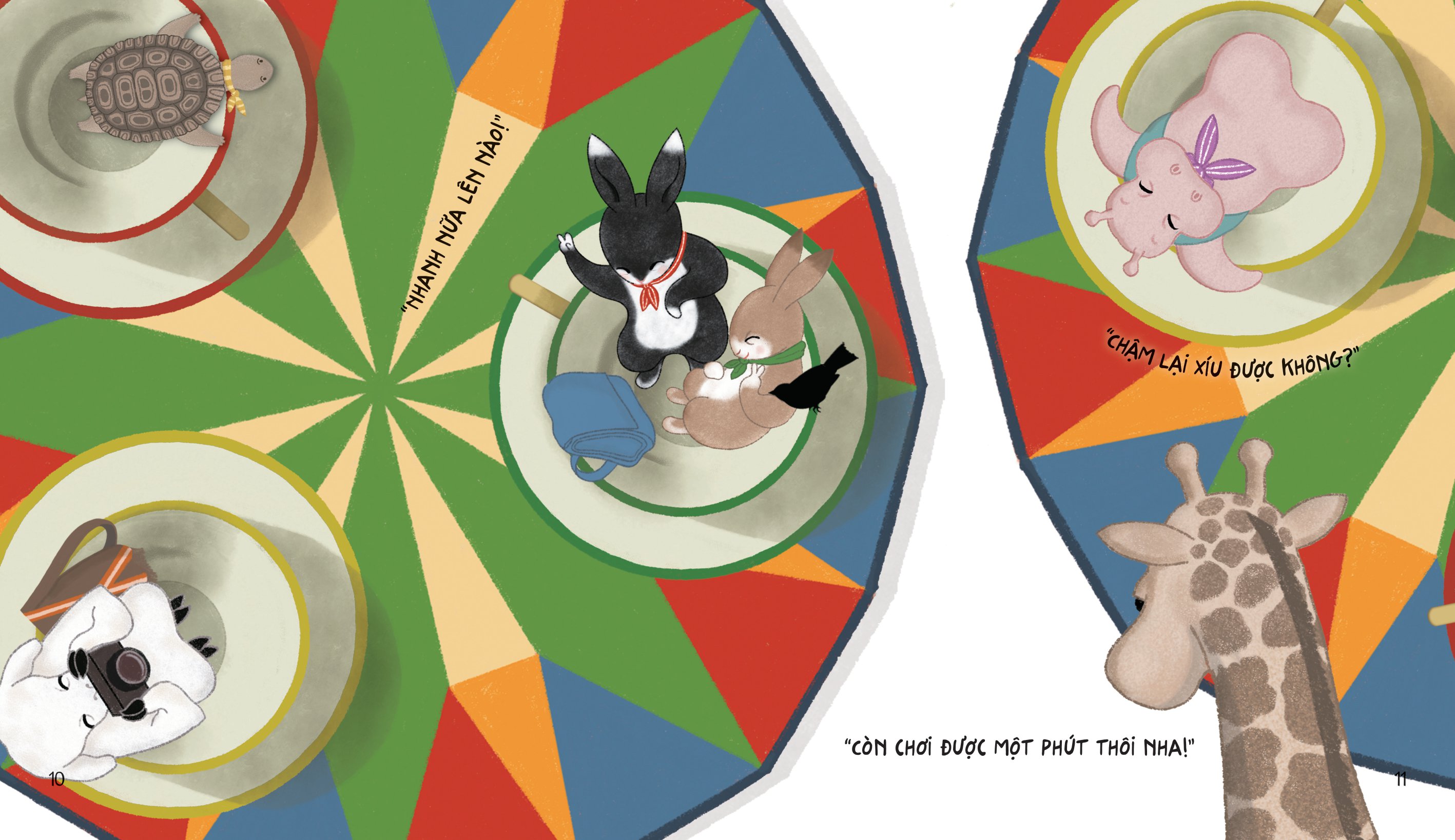 Mời bạn cùng chúng tớ đến khu vui chơi Hạnh Phúc một ngày. Bao nhiêu là trò vui, này đu quay, tàu lượn, này bập bênh, chèo thuyền… Còn niềm vui nào hơn khi được chơi cùng nhau, được chia sẻ bánh kẹo và che chung chiếc ô nhỏ. Có bạn bè cạnh bên chính là việc vui nhất trên đời!