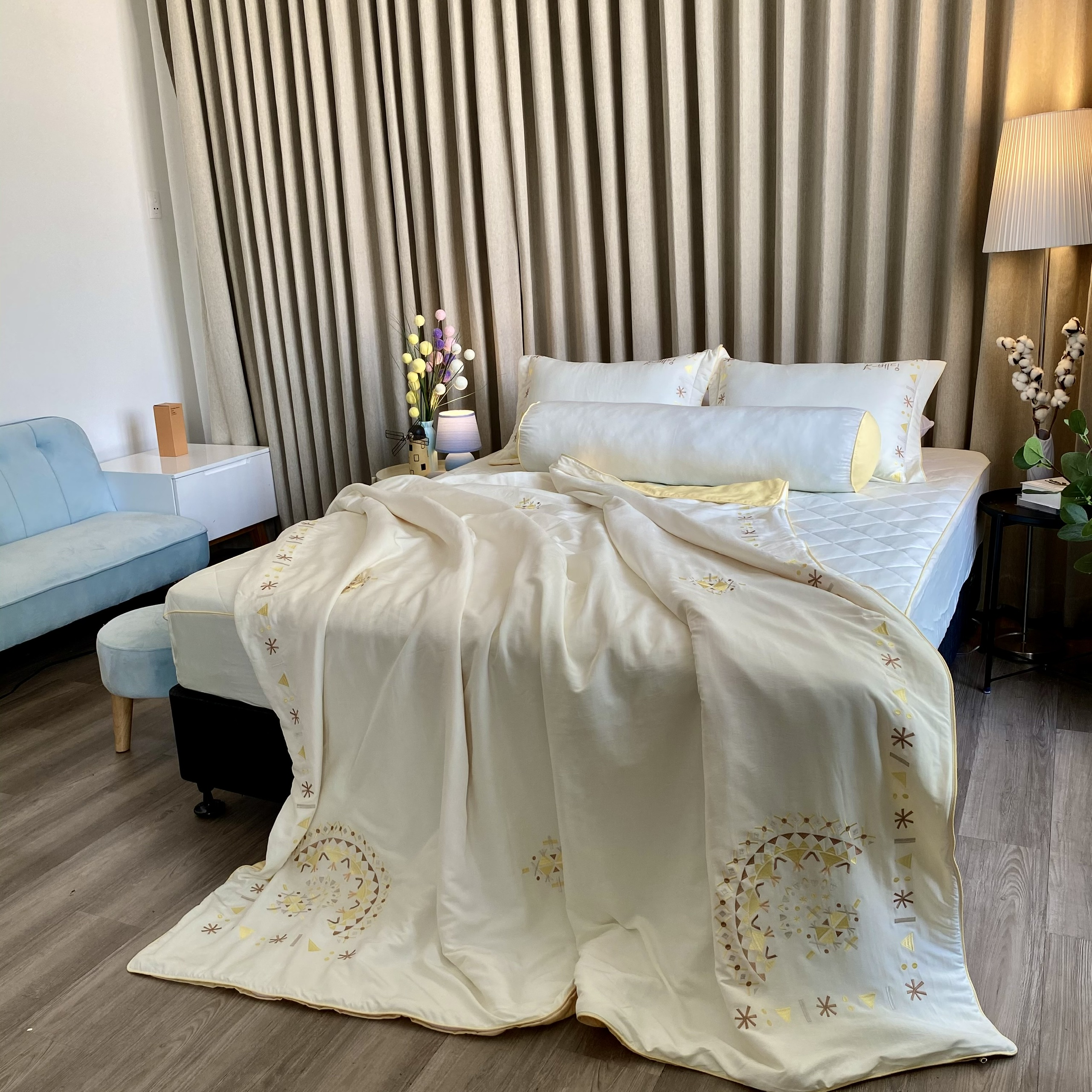 Màu sắc trang nhã , phù hợp với mọi phòng ngủ Chất liệu vải tencel : Vải mềm , mịn , mát , thấm hút mồ hôi tốt chăn bốn mùa kích thước 200*220 rộng