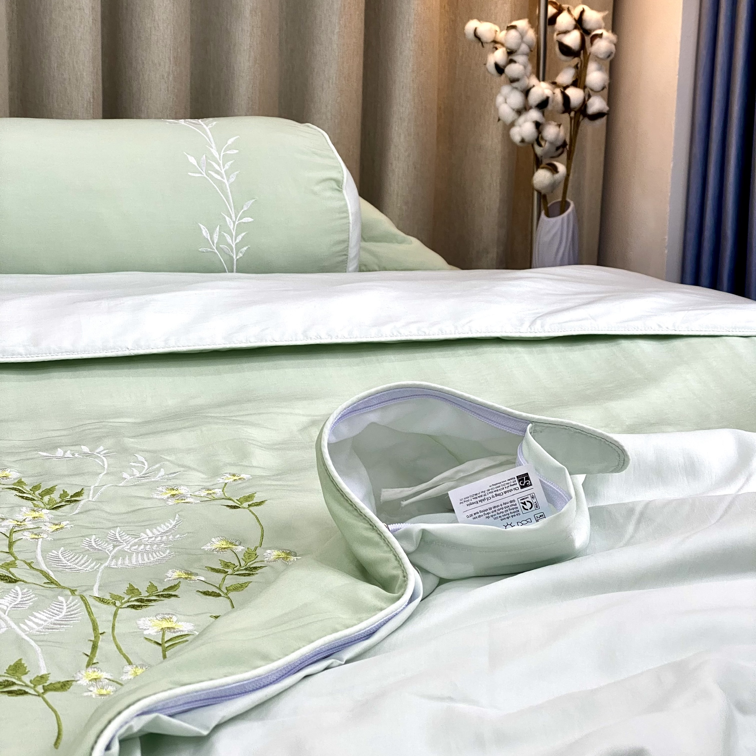 Bộ chăn ga Everon ESB22055 gam màu xanh mát lạnh 100% chất liệu Bamboo sợi tre #Everon #changagoi